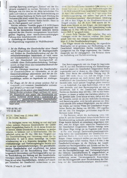 BGH II ZR 312/88 betrifft die "GbR Kurfürstendamm 12-15, angeblich vertreten durch den Gesellschafter-Geschäftsführer RA Wellmann", jetzt CDU-MdB.