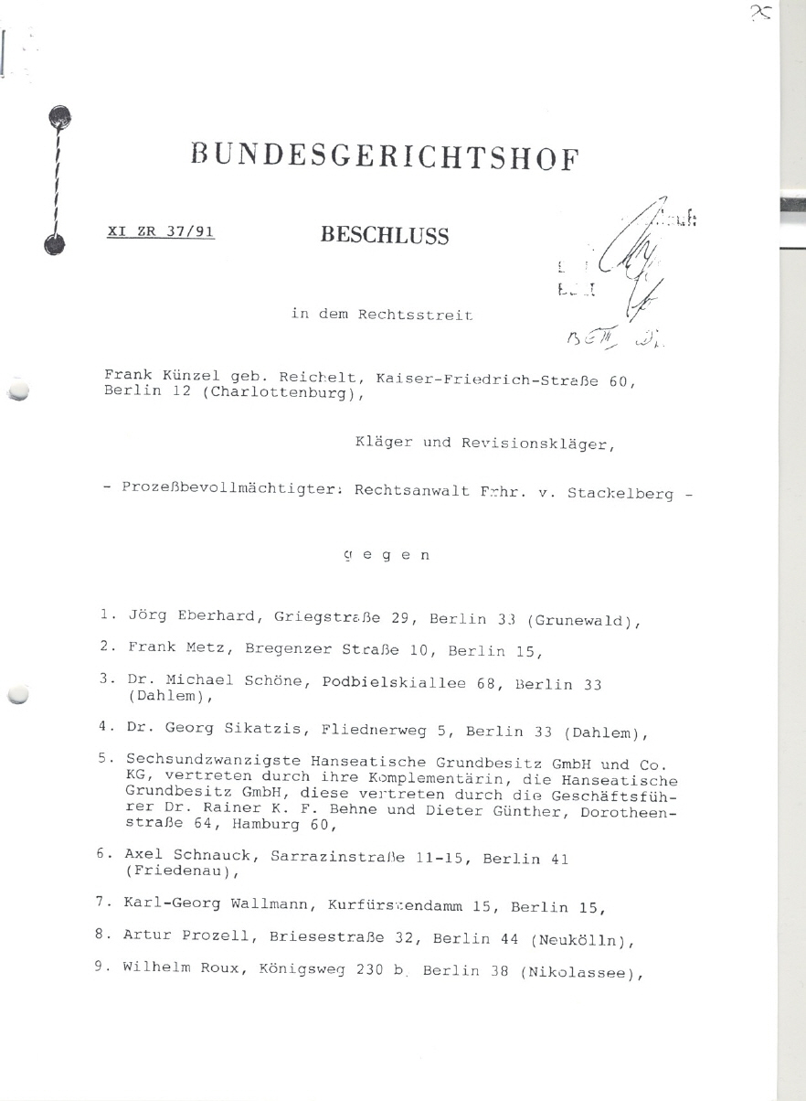 die Revision des Klägers Künzel gegen das abgeänderte Urteil KG 3 U 2981/90 [2.114 KB]