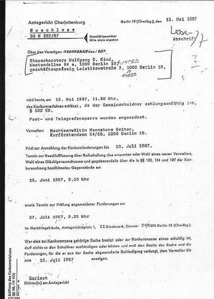 Im Zusammenhang mit der "GbR Kurfürstendamm 12-15" haben die Richter in den von ihnen angeblich "festgestellten" Urteilstatbeständen die Eintragung von Kind, Schröder, Eberhardt, Metz, Schöne, Sikatzis, Krause, Braun und Schnauck (als GbR) am 20.9.1985 [546 KB]